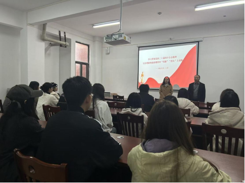 活动中,杨阳书记首先进行理论领学,系统解读了《中国共产党第二十届中央委员会第四次全体会议公报》的核心要义。她围绕“十五五”时期经济社会发展的指导思想、主要目标、“十五五”时期的战略任务和重大举措等重要内容,深入浅出地阐述了全会的重大意义和战略部署,引导同学们深刻领会全会精神,把握时代脉搏。刘良灿院长则立足实践层面,结合贵州省情,通过旅游产业化和新型工业化的生动案例,具体阐释了如何将全会精神转化为推动发展的实际效能。他以贵州旅游高质量发展和工业转型升级为例,展现了治理效能提升在服务地方经济社会发展中的重要作用,使同学们对“四新”“四化”战略有了更直观的理解。
