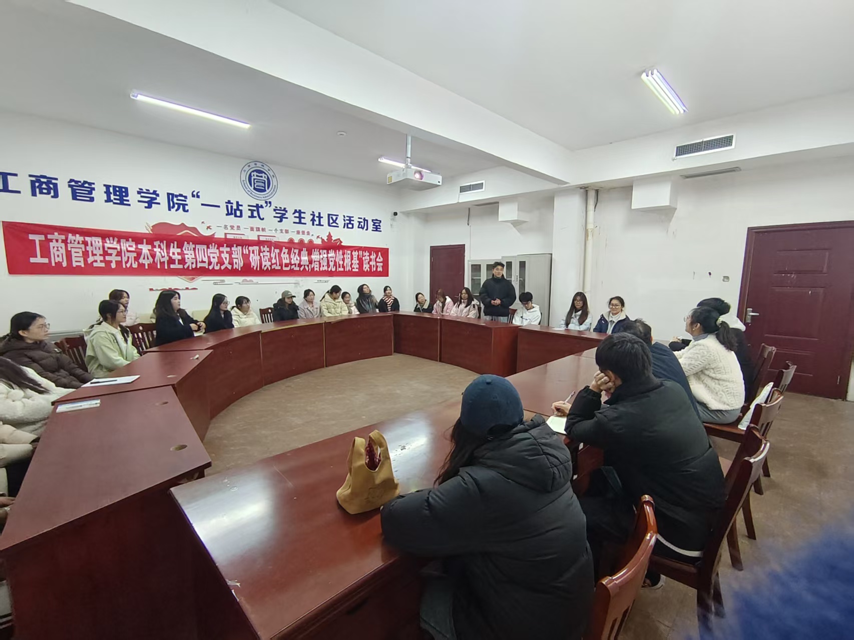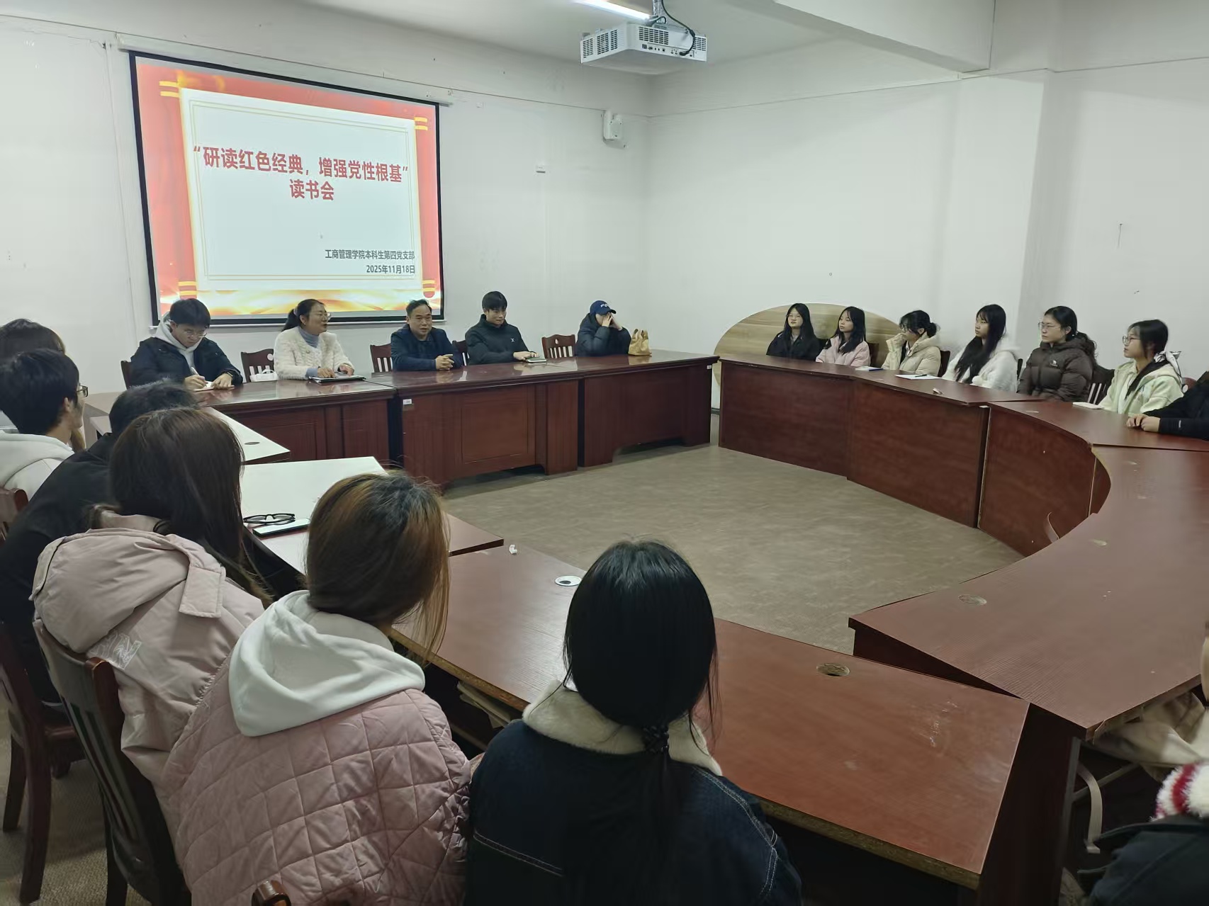 为强化学生党员党性修养,引导青年党员从红色经典中汲取精神力量,2025年11月18日,贵州财经大学工商管理学院本科生第四党支部在翠竹苑二栋举办“研读红色经典,增强党性根基”读书会。学院副院长胡北明到场指导,本科生第四支部书记蒋小芳及全体党员学生参与活动。