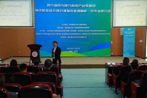 由贵州财经大学工商管理学院主办,贵州财经大学工商管理学院物流教研室承办,贵州财经大学现代物流与现代商贸产业导师团、贵州财经大学运营与供应链管理管理研究中心、贵州财经大学物流系统优化学习俱乐部、贵州财经大学未来管理者协会、贵州财经大学工商管理学院本科生第三党支部协办,遵义瑞丰林农业开发有限公司支持,现代物流与现代商贸产业导师团、物流校友会共商共建物流管理国家一流专业研讨会于2024年11月9日成功举办。