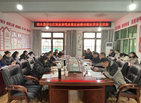 1月3日下午,课题组一行还参加了由惠水县人民政府主持召开的“惠水县好花红镇旅游高质量发展规划编制座谈会”。惠水县委常委、宣传部部长、统战部部长莫凡,惠水县人民政府办公室综合服务中心主任吴雯,惠水县文化广电和旅游局副局长严忠林等惠水县相关部门主要领导以及好花红镇党政主要领导等20余人参加了调研座谈会。座谈会由惠水县委常委、县人民政府党组成员、副县长(挂职)孙光辉主持。
