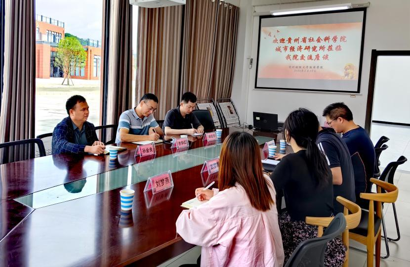 胡剑波介绍了学院学科、专业以及学生基本情况,表明经济学院与贵州省社会科学院城市经济研究所在人才培养方面进一步合作,能够有效提升学院人才培养的质量。贺红兵提出了学院目前在实习实践方面的需求,希望通过进一步合作,拓展学生校外实习平台,还能通过调研写作提升学生的学术能力。