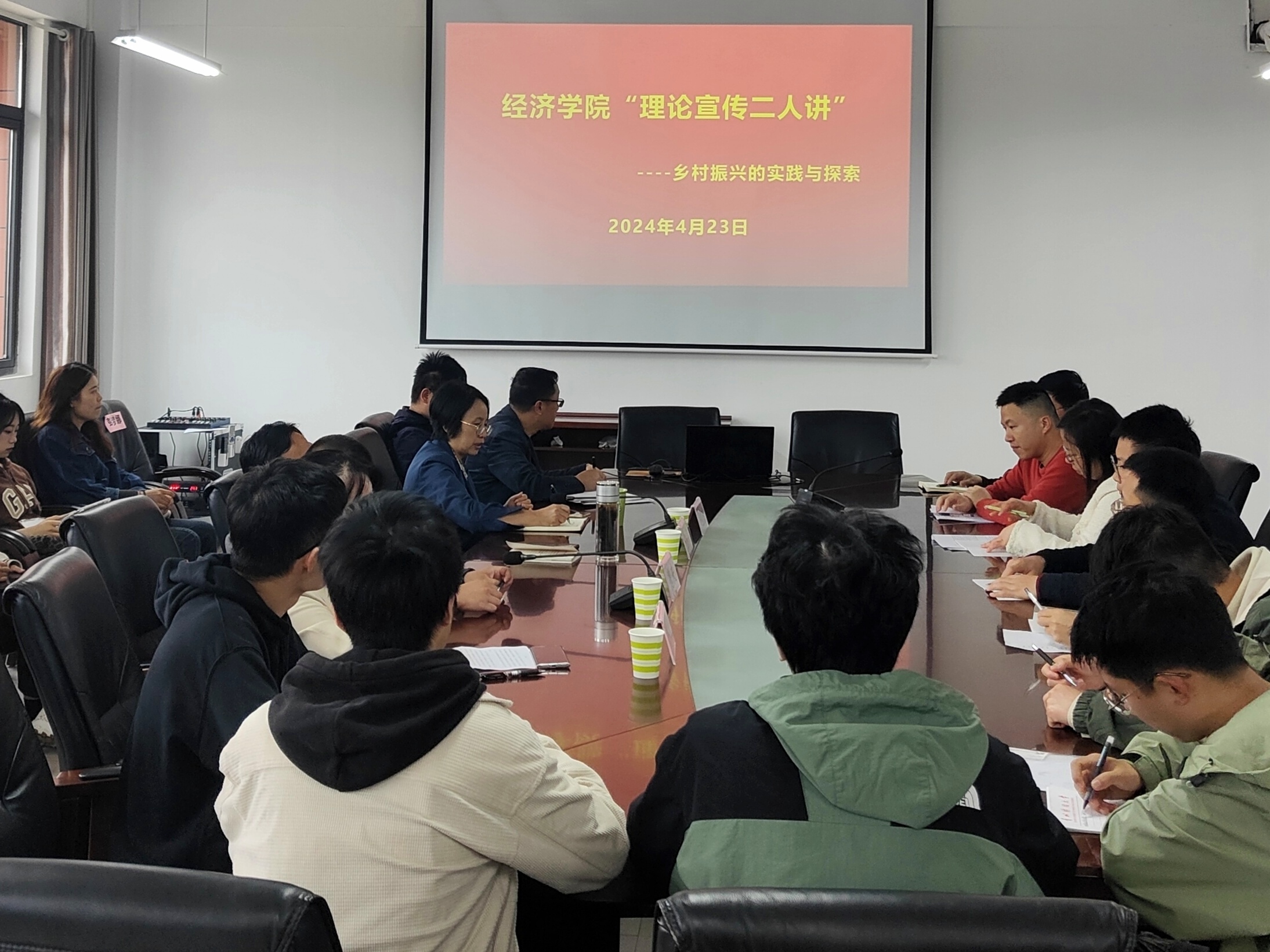 本网讯:(经济学院 邓志鸿 图文报道)为了把党的二十大精神讲明白讲透彻,让师生群众听得懂、能领会、可落实。4月23日,经济学院学院人口、资源与环境经济学博士生导师王永平教授与获得台江县2023年巩固脱贫攻坚成果优秀第一书记称号的经济学院选派到台江县南宫镇拥党村担任第一书记的魏来老师,共同围绕“乡村振兴与实践探索”开展了一场理论宣讲。人口、资源与环境经济学系教工党支部、研究生第二党支部部分党员,学院部分师生代表参加了本次活动。