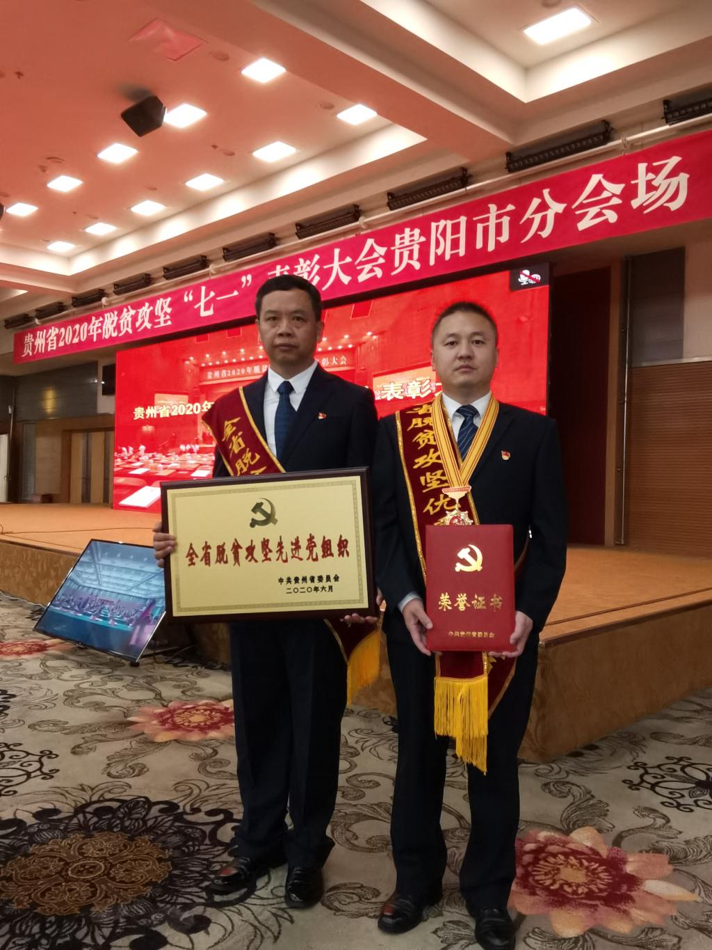 何伟(右)获“全省脱贫攻坚优秀共产党员”表彰