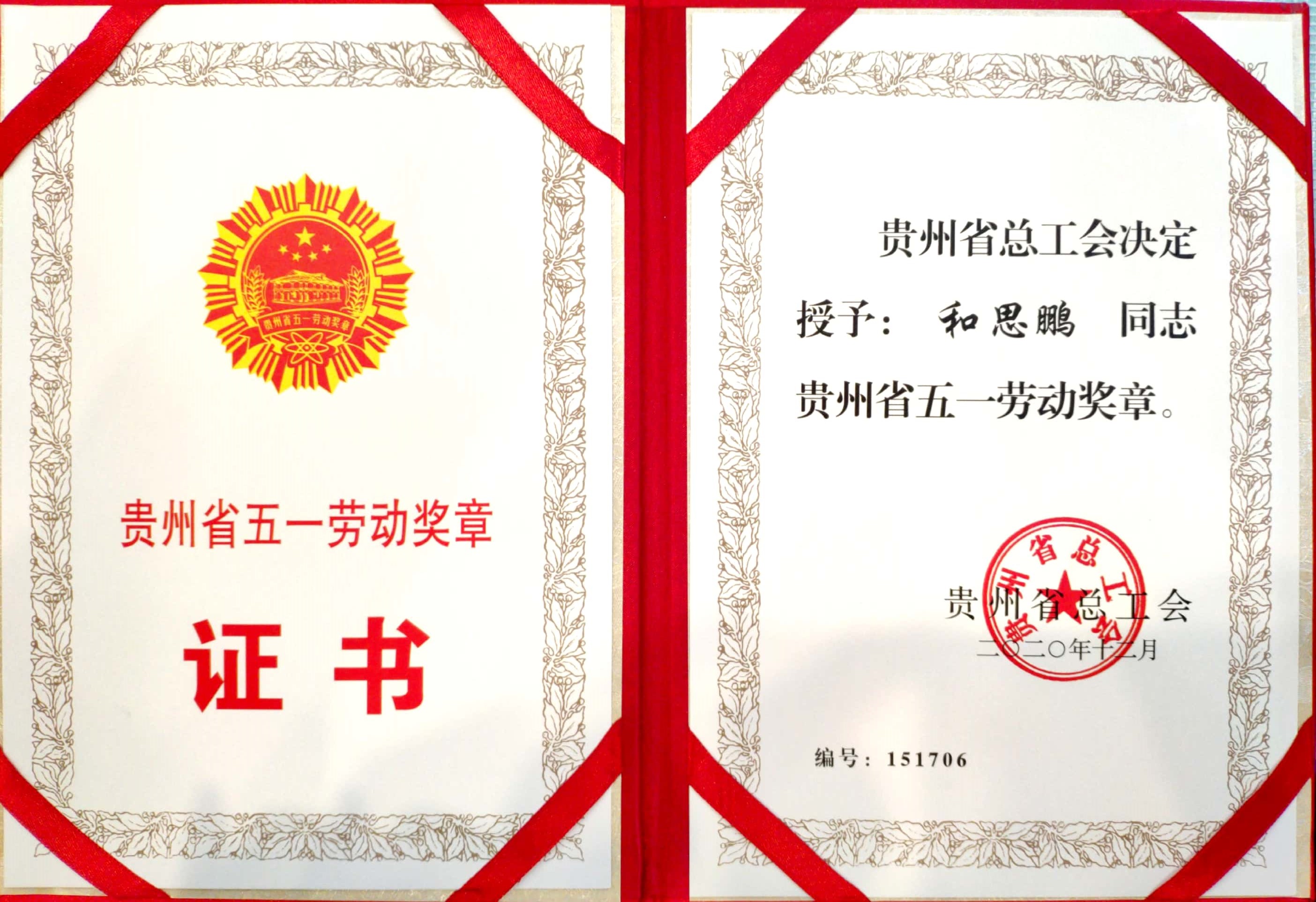 我校和思鹏老师获“贵州省五一劳动奖章”