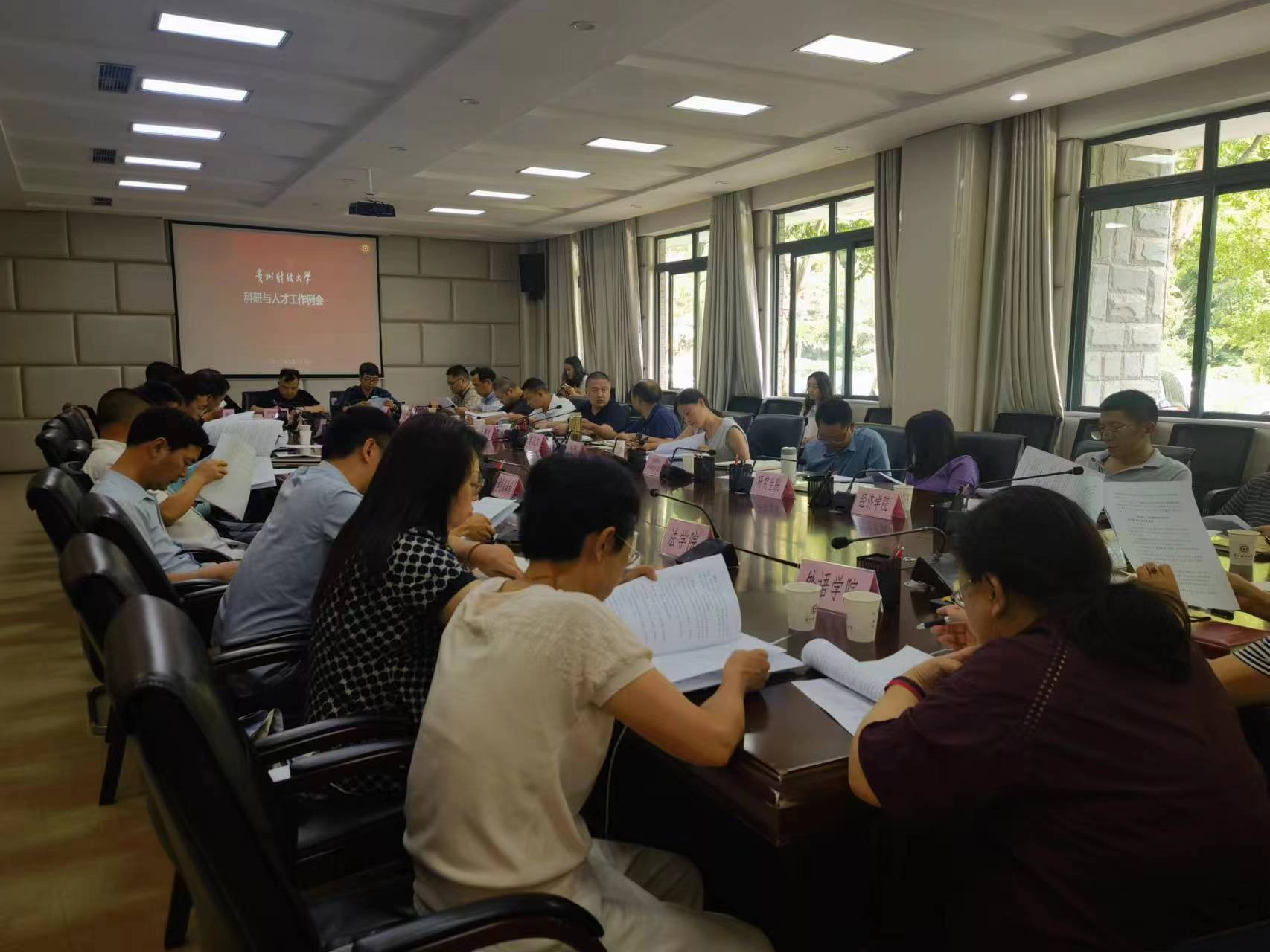 为了深化学校职称改革、加强学校人才队伍建设,6月28日下午,学校在立德楼104会议室召开科研与人才工作例会。副校长李汉文出席会议,党委组织部、人事处、发展规划处(学科建设办公室)、科研处、教务处、研究生院等职能部门及各科研教学单位负责人、分管科研人才工作负责人及各学院教师代表参加会议,会议由人事处处长何伟主持。