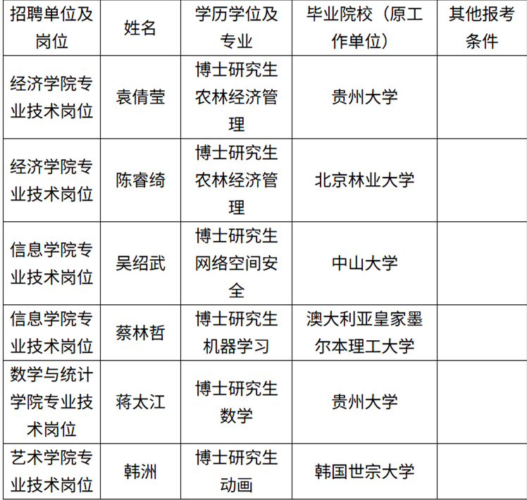 根据《贵州财经大学2025年高层次人才引进公告》,经发布公告、报名、笔试、资格复审、面试及总成绩计算等程序并体检、考察合格,现将拟聘用人员名单予以公示。公示期间,如有问题,请向我单位反映。