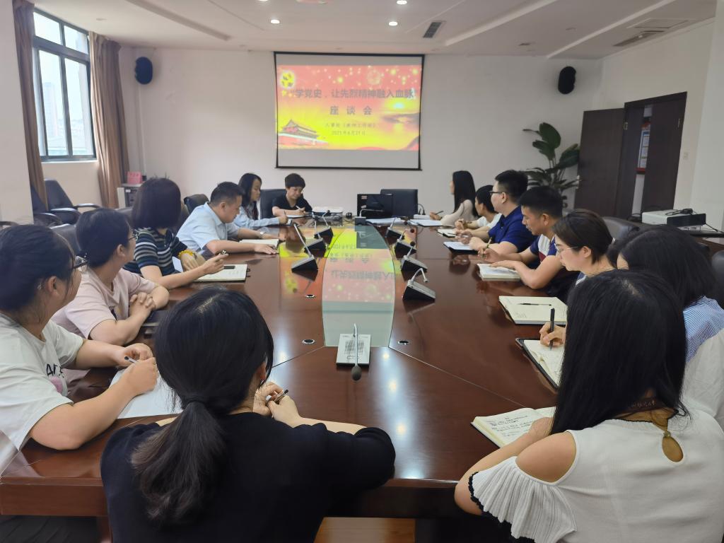 6月21日下午,人事处(教师工作处)在立德楼322会议室召开以“学党史,让先烈精神融入血脉”为主题的座谈会,会议由人事处(教师工作处)处长何伟主持,人事处全体人员参加会议。