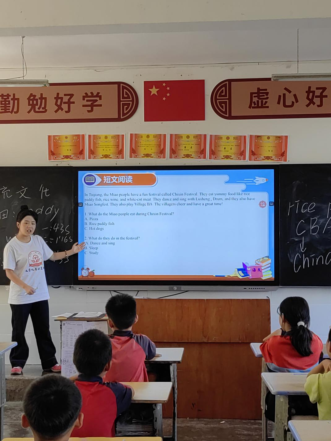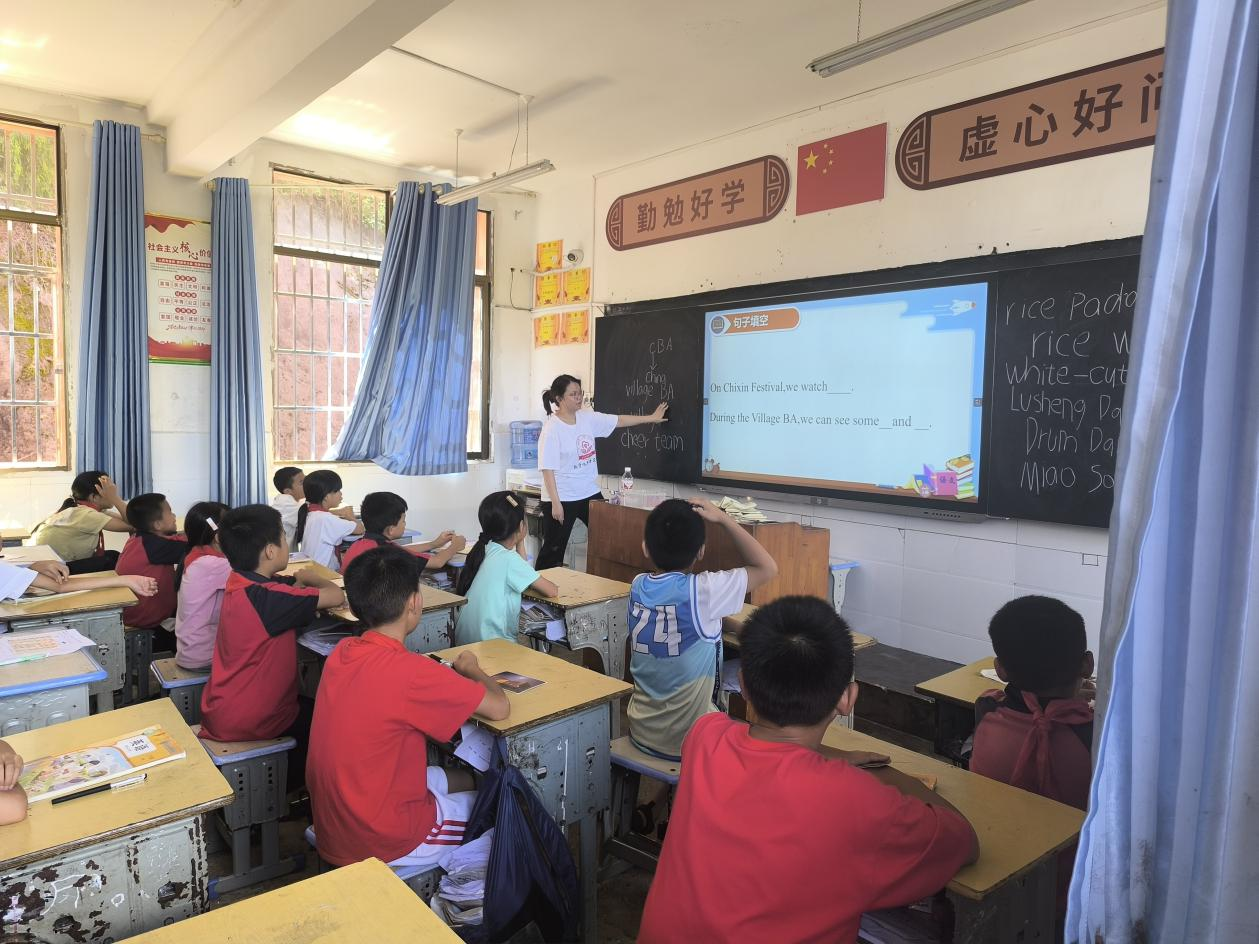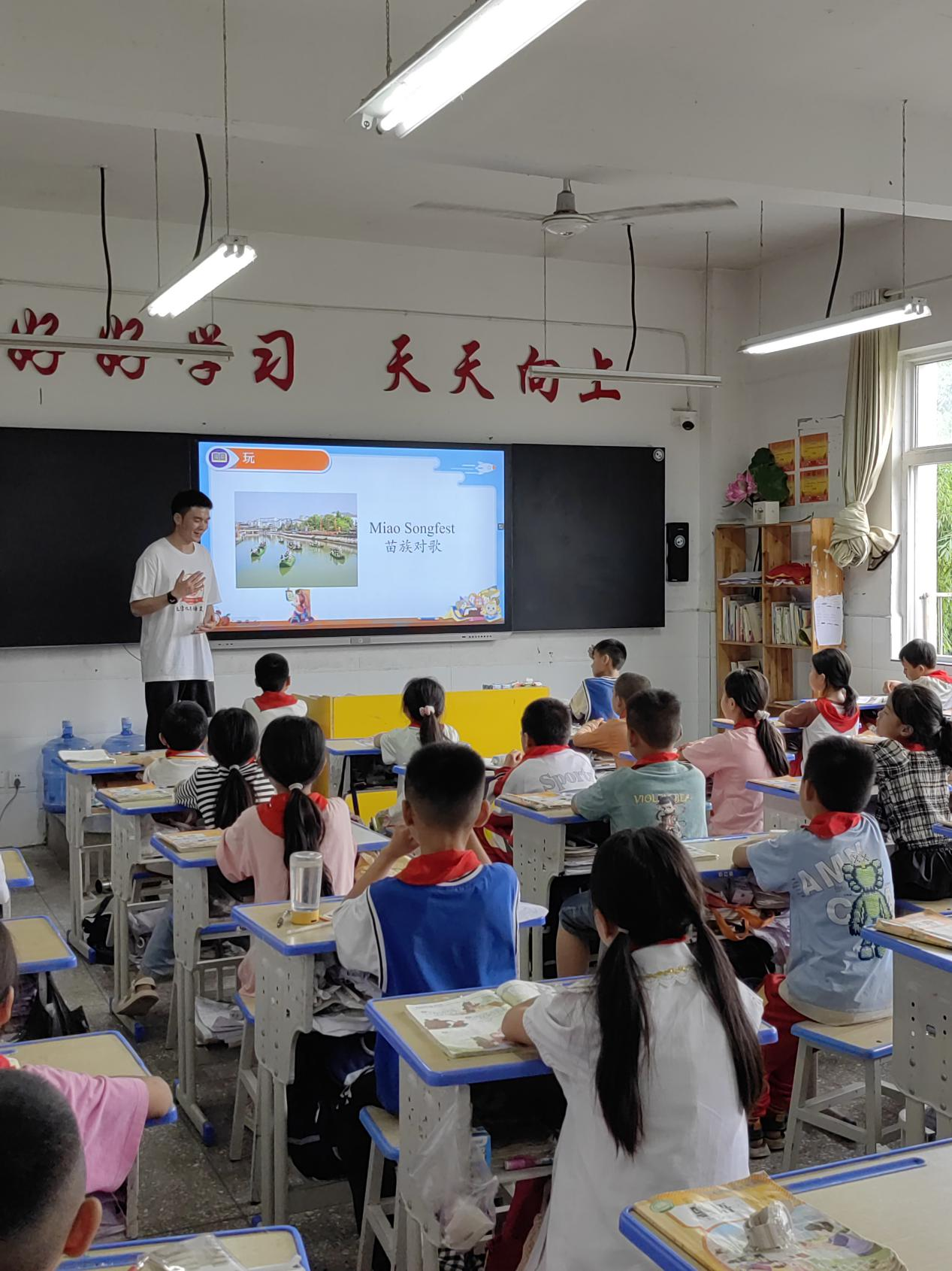 从节日文化、特色美食、民族歌舞到共享体育赛事,从一支粉笔一块黑板到数字化的英语游戏,支教团队将语言学习与文化传承相结合,带领孩子们用英语讲述苗族文化,让孩子们在学ABC的同时,更爱上了自己的家乡文化,增强了文化自信。这堂别开生面的英语课受到了当地师生的好评,在交流过程中,两所学校的老师们高度评价了此次支教活动。