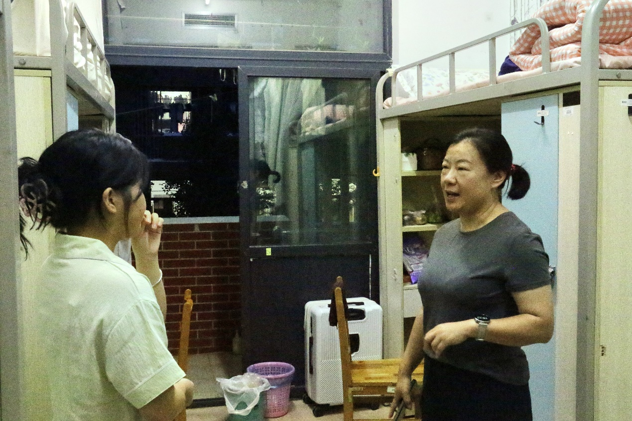 8月23日,外语学院党委副书记汪欢带领学生科辅导员老师深入2025级新生寝室,开展新生入住走访活动。