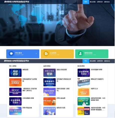 另外,截至目前贵州财经大学研究生共举办3场校园双选会、5场校园宣讲会。提供岗位数200个。在就业服务方面,学校升级改版了研究生就业云平台,实现招聘信息“企业发布-毕业生随时可查-简历一键投递”全过程覆盖。